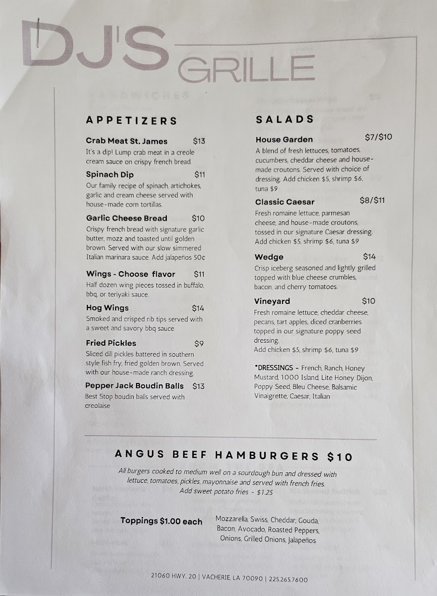 Welcome to DJ's Grille, a hidden gem located at 21060 LA-20 in Vacherie, Louisiana. This locally owned restaurant offers a diverse menu that celebrates Southern flavors with a touch of local charm. Patrons rave about the fried pickles paired with a spicy jalapeno ranch—a crunchy, zesty start to any meal.